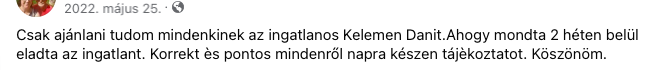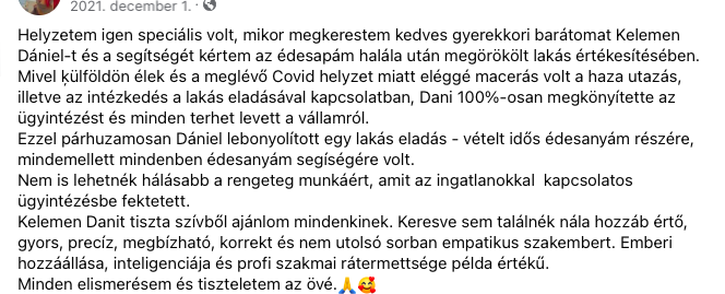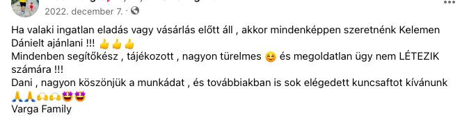 Kelemen Dániel vagyok, ingatlanközvetítő, több mint egy évtizedes, kiforrott szakmai tapasztalattal. Az évek során megszerzett tudásommal és átfogó kapcsolatrendszeremmel segítem ügyfeleimet a legjobb üzleti döntések meghozatalában az ingatlanpiacon. Célom, hogy minden ügyfelem a lehető leghatékonyabb és legjövedelmezőbb megoldásokat találja meg, legyen szó eladásról, bérbeadásról vagy ingatlanfejlesztésről.