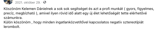 Az ügyfeleim sikerét szem előtt tartva, rugalmas, megbízható és eredményorientált szolgáltatást nyújtok, amely túlmutat a hagyományos ingatlanközvetítésen. Az ingatlanpiaci folyamatokat alaposan ismerem, és minden lépésnél arra törekszem, hogy a tranzakciók zökkenőmentesen és eredményesen záruljanak.